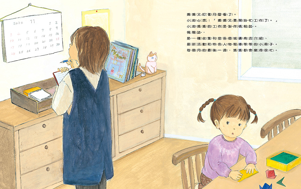 小莉的媽媽是個製作情報誌的編輯,職業婦女為了兼顧工作和家庭,很是辛苦。有時工作一忙起來,難免忘東忘西、疏忽了對小莉的照顧。這是個母女間因為忙碌而疏忽溝通到彼此體諒的溫暖故事。